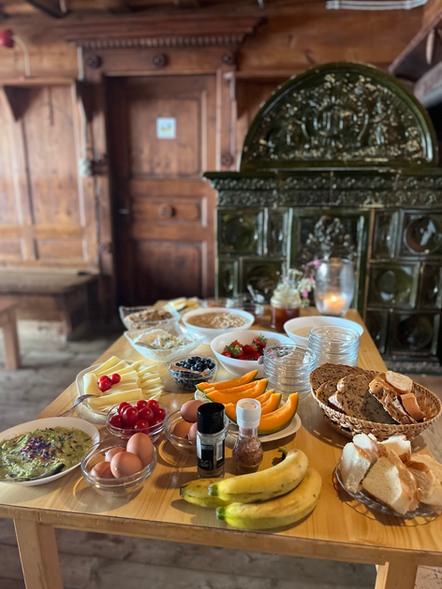 Das Vigiljoch erreicht man nur mit dem Sessellift oder zu Fuß, was schon der erste Schritt ist, um in die richtige Stimmung zu kommen. Sobald du oben angekommen bist, wirst du von einem großen, charmanten Haus begrüßt, das mit viel Liebe und Geschichte ausgestattet ist. In der alten Stube fühlt sich alles wie zuhause an – gemütlich und warm. Es gibt mehrere Räume, die ideal für unsere Yoga-Praxis sind, und bei schönem Wetter öffnen wir die Türen zum großen Garten und machen unsere Sonnengrüße draußen, mitten in der Natur.